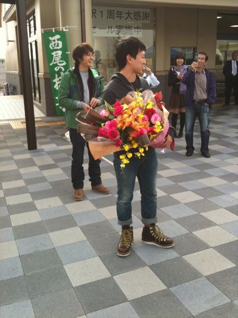 そして、この日はアッキー(篠山輝信さん)の「産直日本」の中継が、今回の西尾市で100地点目を達成したということで、収録後にこんなサプライズもありました。